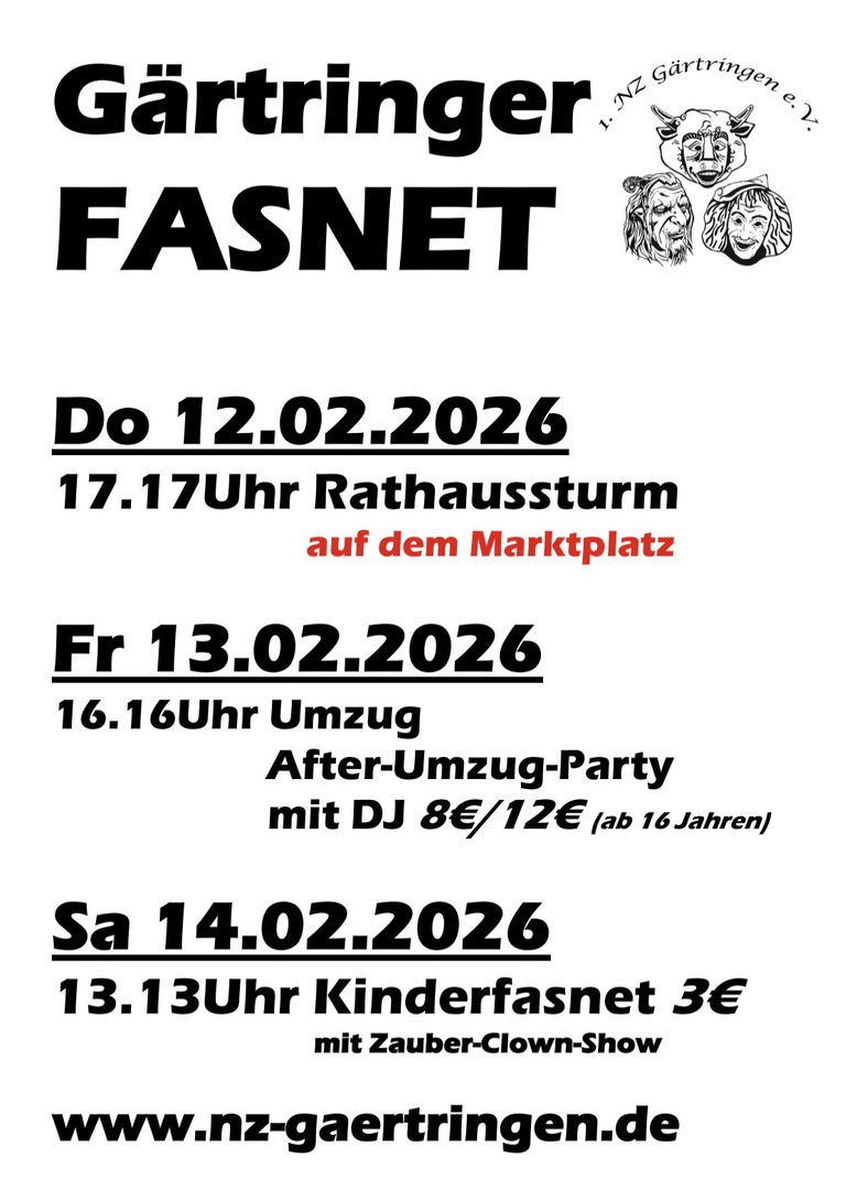 Wir die 1. Narrenzunft Gärtringen e.V. möchten an unserem Umzug in Gärtringen die ortsansässigen Vereine unterstützen, dadurch lassen wir keine gewerblichen Unternehmen zu.